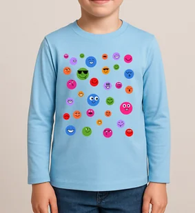 Niebieska koszulka z długim rękawkiem na Dzień Kropki dla chłopczyka - wzór kropki z uśmieszkami