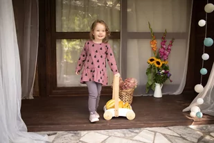 Różowa tunika Tres Bien w modny wzór gruszek, które są motywem przewodnim całej kolekcji. Dół tuniki wykończony jest efektowną, dziewczęcą falbanką. Specjaln...