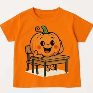 Pomarańczowa koszulka NA DZIEŃ DYNI Z DYNIĄ W SZKOLNEJ ŁAWCE