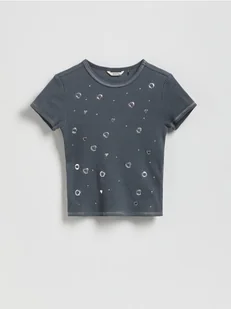 Reserved - Bawełniany t-shirt z aplikacją - ciemnoszary