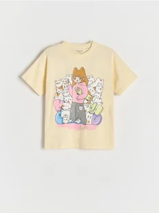 Reserved - Bawełniany t-shirt z nadrukiem - beżowy