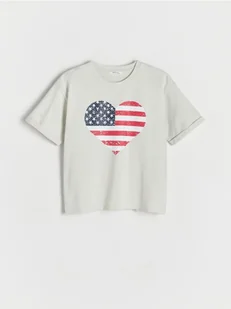 Reserved - Bawełniany t-shirt z nadrukiem - jasnoszary