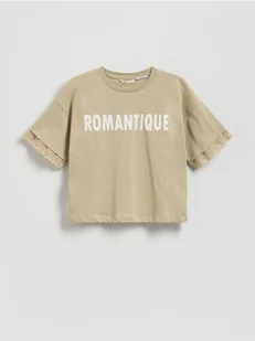 Reserved - Krótki t-shirt z nadrukiem - oliwkowy