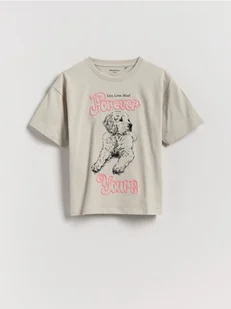 Reserved - T-shirt z haftowanym napisem - jasnoszary