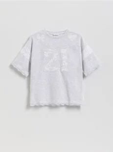 Reserved - T-shirt z koronkowym zdobieniem - jasnoszary