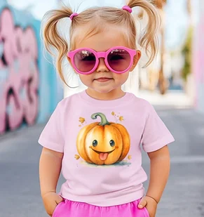 Różowa koszulka dla dziewczynki na Dzień Dyni z dynią - dynia66