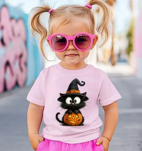 Różowa koszulka dla dziewczynki na Dzień Dyni z dynią - kotdynia70
