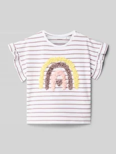 T-shirt dziecięcy Name It;Mieszanka bawełny i elastanu;Krój regular fit;Model ‘JADEY’;Volants;Okrągły dekolt;Długość tyłu w rozmiarze 116: 40 cm