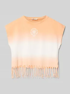 T-shirt dziecięcy Apricot;Czysta bawełna;Luźny krój;Okrągły dekolt z prążkowanego ściągacza;Nadruk z motywem;Postrzępiony dół;Cieniowanie;Długość tyłu w rozmiarze 140: 44 cm