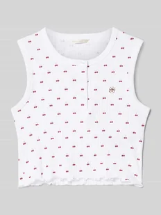 Top dziecięcy GUESS;Mieszanka bawełny i elastanu;Prosty krój;Okrągły dekolt;Efekt prążkowania;Krótka listwa guzikowa;Aplikacja z logo;Długość tyłu w rozmiarze 140: 35 cm
