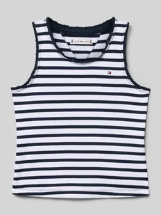Top dziecięcy Tommy Hilfiger Teens;Mieszanka bawełny i elastanu;Krój regular fit;Wyhaftowane logo;Faliste wykończenie;Długość tyłu w rozmiarze 140: 41 cm