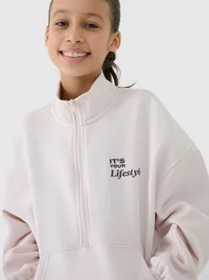 Z przodu otwarta kieszeń kangurka. Wkładana przez głowę. Obniżone opadające rękawy dodają swobody. Dół z szerokim ściągaczem. Bluza bez kaptura 4F dziewczęca - CECHY: