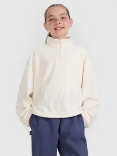 Dziecięca bluza polarowa 4F z technologią 4FWarm – lekkość, ciepło i dopasowanie Technologia 4FWarm czesane wnętrze wspiera komfort cieplny w chłodne dni Grubszy, miękki polar przyjemny w dotyku i idealny na chłodniejsze dni Krój oversize luźne dopasowanie zapewnia swobodę i wygodę Skrócony fason cropped modna długość świetnie sprawdzi się na co dzień Stójka z zamkiem chroni szyję i dodaje sportowego charakteru Dół ze ściągaczem regulacja pozwala dopasować fason do sylwetki Dziewczęca bluza polarowa – na spacer, na wycieczkę, pod kurtkę Sprawdzi się w chłodne dni – zarówno na co dzień, jak i podczas aktywności jak narty, trekking czy zimowe spacery. Technologia 4FWarm dba o komfort cieplny, a miękki i szybkoschnący materiał odprowadza wilgoć i nie obciąża sylwetki. Grubszy polar o luźnym kroju oversize i skróconej długości cropped zapewnia swobodę i nowoczesny styl. Dzięki dobrej pakowności łatwo zmieści się w plecaku lub torbie. Wygodna stójka osłania szyję przed chłodem, a modny nadruk dodaje dziewczęcego charakteru.