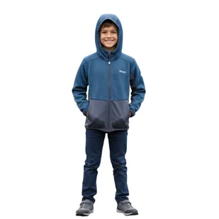 Elastyczne panele boczne oraz wstawki przy kapturze i rękawach gwarantują pełną swobodę ruchów, idealnie dopasowując się do ciała podczas aktywności. Bezpieczne kieszenie: Dwie dolne kieszenie zapinane na zamek błyskawiczny pozwalają na bezpieczne przechowanie kluczy, telefonu czy znalezionych w lesie skarbów. Detale odblaskowe: Subtelne elementy odblaskowe na rękawie zwiększają widoczność i bezpieczeństwo dziecka po zmroku.