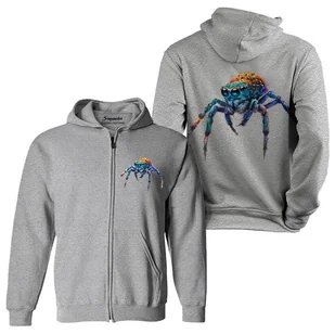 Kolorowa grafika pająka z przodu i z tyłu bluzy. Super prezent dla małego pajęczarza. Wysokiej jakości rozpinana bluza z kapturem typu kangur. Pełne rozpięcie na zamek czyni bluzę niezwykle praktyczną i wygodną w codziennym użytkowaniu. Wygodna i trwała bluza młodzieżowa z kapturem to idealne rozwiązanie dla dzieci i nastolatków.