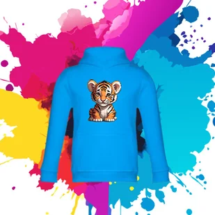 Bluza dziecięca typu kangurka z kapturem w kolorze błękitnym z nadrukiem tygrysek 6 lat