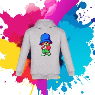 Bluza dziecięca typu kangurka z kapturem w kolorze jasnoszarym z nadrukiem miś Tadzio 12 lat