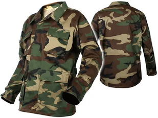 Parametry: Model: Bluza BDU T/C Kids Producent: Mil-Tec, Niemcy Materiał: 65% poliester, 35% bawełna Zapinana na rząd guzików osłoniętych listwą materiałową Regulacja mankietów Regulacja pasa Miejsca w łokciach posiadają dodatkowe przeszycie 4 kieszenie zapinane na patki z guzikami