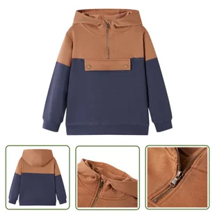 Bluza dziecięca z kapturem i krótkim zamkiem - antracyt i koniak - 128 - Bluza Chłopięca