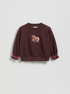 Reserved - Bawełniana bluza z nadrukiem - ciemnobrązowy