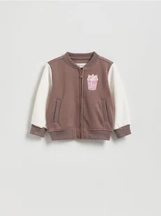 Reserved - Bluza bomber z nadrukiem - brązowy