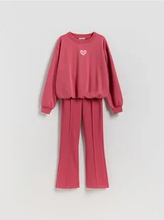 Komplet składający się z bluzy i spodni, wykonany z dzianiny z bawełną.
