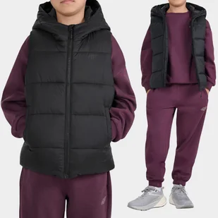 Kamizelka Chłopięca 4F Warm Bezrękawnik Z Kapturem Czarny 4FJWAW25TVJAU293 Czarny 158