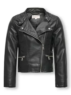 ONLY Dziewczęca kurtka motocyklowa ze sztucznej skóry z długim rękawem i kieszenią, Czarny, 158