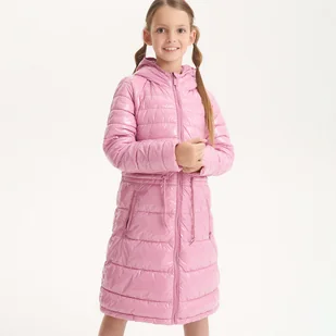 Ocieplany płaszcz o regularnym kroju, wykonany z pikowanej tkaniny z efektem połysku.