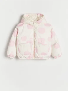 Kurtka o regularnym kroju, wykonana ze wzorzystej tkaniny z puchowym wypełnieniem.