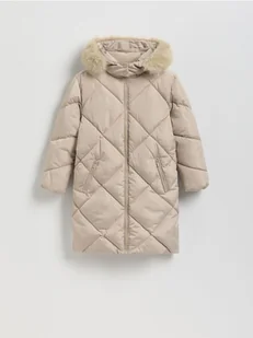 Reserved - Pikowany płaszcz z kapturem - beżowy