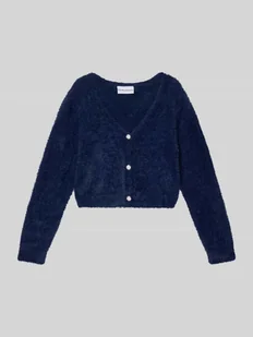 Kardigan dziecięcy DANAMADE;Imitacja dzianiny;Krój regular fit;Obszycie ozdobnymi kamieniami ;Dekolt w serek;Listwa guzikowa;Długość tyłu w rozmiarze 140: 36 cm;Długość rękawa w rozmiarze 140: 50 cm