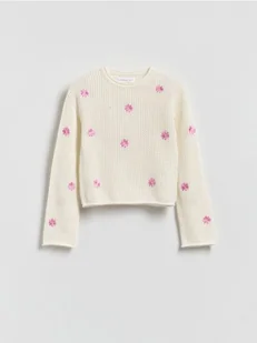 Reserved - Bawełniany sweter z haftem - złamana biel