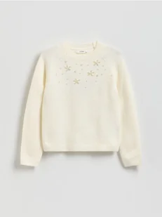 Reserved - Dzianinowy sweter z aplikacją - złamana biel