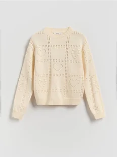 Reserved - Sweter z ażurowym wzorem - złamana biel