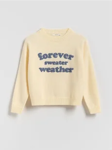 Reserved - Sweter z napisem - złamana biel