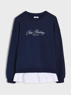 Sinsay - Bluza - granatowy - okrągły dekolt,obniżona linia ramion,długie rękawy zakończone ściągaczem,ozdobny dół, obszyty koszulą