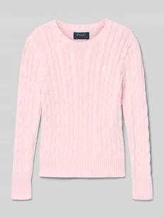 Sweter dziecięcy Polo Ralph Lauren Teens;Efekt: jednolity kolor;Krój: Krój regular fit;Wzór: Ścieg warkoczowy;Aplikacja: Wyhaftowane logo;Kształt kołnierza:
