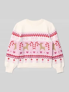 Sweter świąteczny dziecięcy s. Oliver RED LABEL;Efekt: Wzór na całej powierzchni;Krój: Krój loose fit;Wzór: Motyw bożonarodzeniowy;Dekolt: