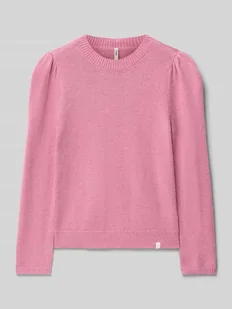 Sweter z dzianiny dziecięcy Only;Model ‘Katia Life’;Efekt: jednolity kolor;Krój: Krój regular fit ;Kształt kołnierza: Bez dekoltu;Rękaw: Bufiaste rękawy;Zakończenia rękawów: