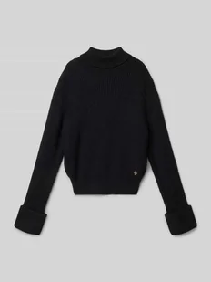 Sweter z dzianiny dziecięcy Guess;Mieszanka wiskozy;Luźny krój;Prążkowane wykończenia;Golf;Detal z logo;Długość tyłu w rozmiarze 140: 43 cm;Długość rękawa w rozmiarze 140: 61 cm