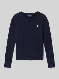 Sweter z dzianiny dziecięcy Polo Ralph Lauren Teens;Czysta bawełna;Krój regular fit;Ścieg warkoczowy;Wyhaftowane logo;Okrągły dekolt;Długość tyłu w rozmiarze S: 45 cm;Długość rękawa w rozmiarze S: 50 cm
