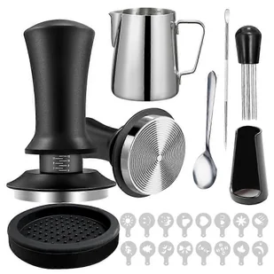 22 PCS Akcesoria do espresso Kawa Espresso Tamper Set z Espresso Tamper WDT Narzędzie Mieszadło do kawy Spienianie Pitche 51mm Czarny