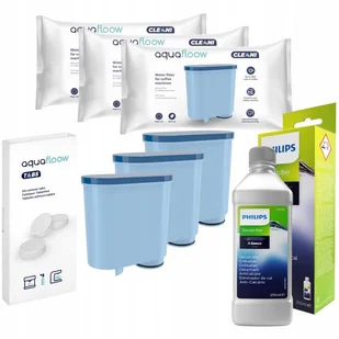 ZESTAW DO EKSPRESU PHILIPS / SAECO - 3X FILTR WODY AQUAFLOOW / TABLETKI CZYSZCZĄCE AQUAFLOOW / ODKAMIENIACZ CA6700
