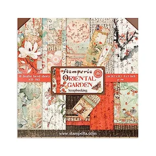 STAMPERIA SBBS09 blok papierowy, 10 arkuszy, 20,3 x 20,3 cm, dwustronny, orientalny ogród, wielokolorowy
