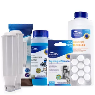 Zestaw Krups - Filtr AL-TES46 2szt, Uniwersalny Odkamieniacz 500ml, Latteo 250ml, Cleaneo Zestaw Do Ekspresu Krups W zestawie: Uniwersalny Odkamieniacz Aqual...