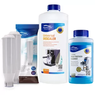 Zestaw Krups - Filtr AL-TES46 2szt, Uniwersalny Odkamieniacz Aqualogis 1L, Płyn Czyszcący System Mleczny Aqualogis Latteo 250ml Zestaw Do Ekspresu Krups W ze...
