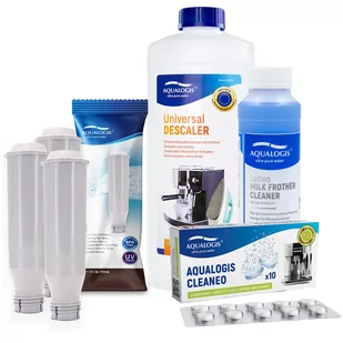 Zestaw Krups - Filtr AL-TES46 3szt, Uniwersalny Odkamieniacz Aqualogis 1L, Płyn Czyszczący System Mleczny Aqualogis Latteo 250ml, Cleaneo Zestaw Do Ekspresu ...