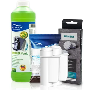 Zestaw Siemens, Filtr Aqualogis AL-Inte 2szt, Siemens Tabletki TZ80001, Verde 1L Zestaw Do Ekspresu Siemens W zestawie: Filtr Aqualogis AL-Inte 2 szt. Tablet...
