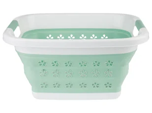 Opis produktu kosz na pranie składany to praktyczne rozwiązanie, które nie zajmuje wiele miejsca wyposażony w stabilną ramę z uchwytami antypoślizgowymi pojemność: 17 l wersja w kolorze biały/miętowy i biały/różowy posiada otwory